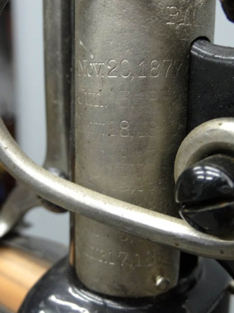 It's a pity the step is not original: in the years 1888-1892 the Expert was fitted withh an adjustable step. The fixed step on this bike was never used on Columbias.
